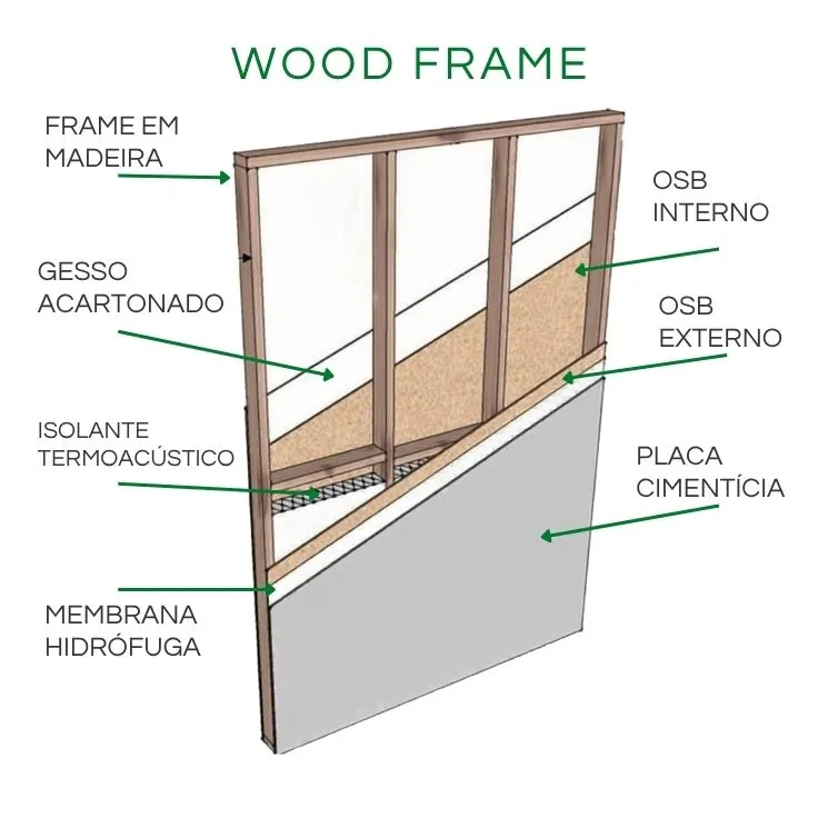 Perfil montante Wood Frame 4x9x250 cm utilizado na composição de sistemas Wood Frame, oferecendo leveza, padronização e eficiência para diferentes etapas da estrutura.